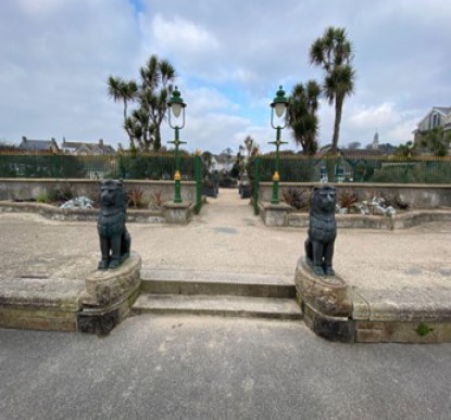 Go past the Bath Inn(see note 4) (probably one of the best public houses in Penzance), turn right onto Western Promenade Road and stay on the right to see the grand casino and the beautiful bronze lions(See note 5) - they like their ears rubbed!