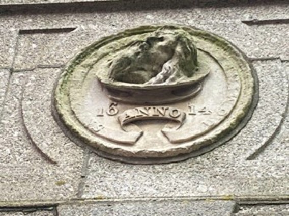 Cross the road junction and continue into Causewayhead shopping area. Walk down Causewayhead taking special notice of the Savoy cinema (see note 12), until you reach the Market House (Lloyds Bank). Keep to the left of the Market House and look up to see another John the Baptist head (see note 13) on the building.
